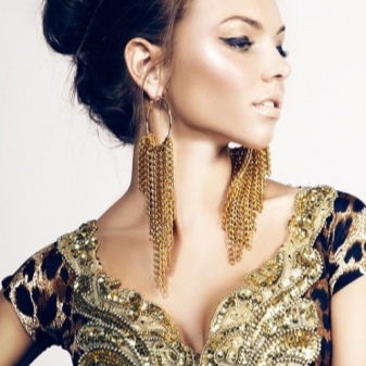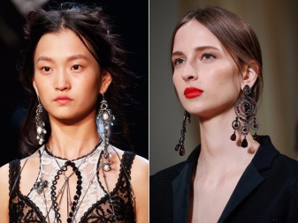 No lady can just walk past earrings - chandeliers. Such models are distinguished by multi-tiered patterns on suspensions. They can be made in absolutely any form.
