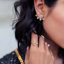 They became especially popular two years ago. Jackets do not need a few punctures in the ear. They are inserted into one hole, but existing pendants look out from under the earlobe, creating the illusion of multiple piercings. They are worn with both casual wear and evening wear.