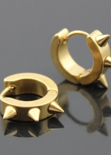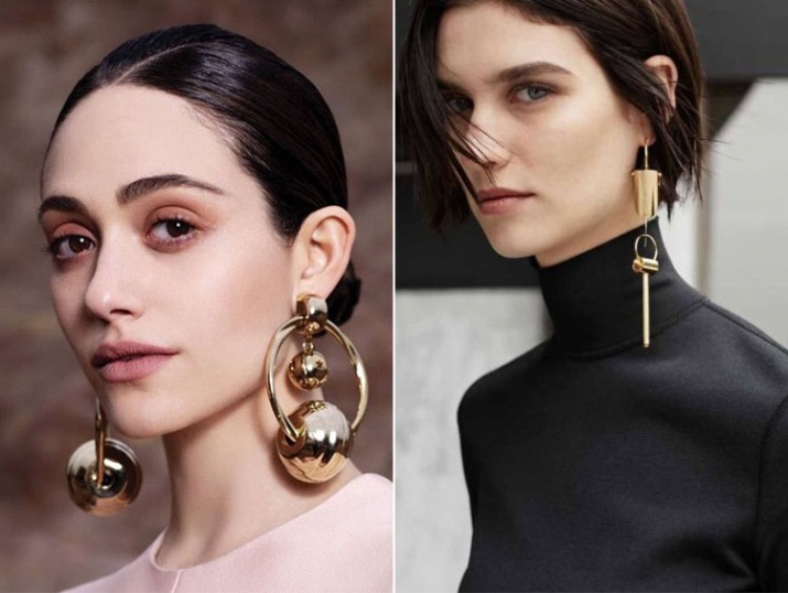 At jewelers you can find unusual gold accessories made in the form of large rings or small squares with pendants. The assortment includes stud earrings.