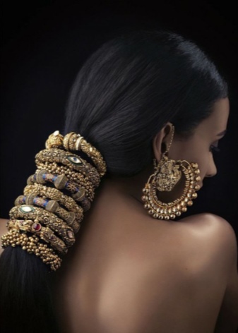 A distinctive feature of Indian and gypsy ear jewelry is their massiveness. They are inlaid with bright sparkling stones.