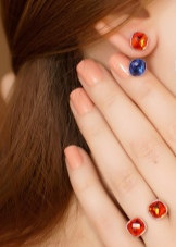 Multi-colored pebbles harmoniously look with a popular type of gold. Darker shades are more suitable for older ladies, and bright and rich colors are more suitable for young girls.