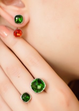 The outer part of the earrings may consist of one small pebble or a larger and more noticeable stone. Today, many jewelers and designers create unique products containing several multi-colored minerals of various shapes.