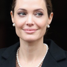 - Angelina Jolie loves to create elegant and feminine images that emphasize her slim figure. The actress prefers to decorate such ensembles with laconic pusets of light tones. Such ornaments look especially harmonious in tandem with white and beige beads.