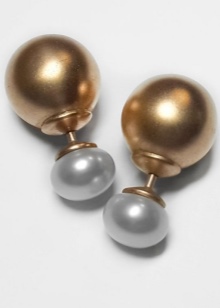 The combination of gold and pearls looks spectacular in earrings, especially if the pearl is in the foreground, and the ball-clasp is made of precious metal. Similar options look simultaneously festive and restrained.
