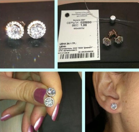 All models of earrings are equipped with reliable clasps made of fine gold. You can choose the perfect jewelry from gold of any shade: red, white or yellow.