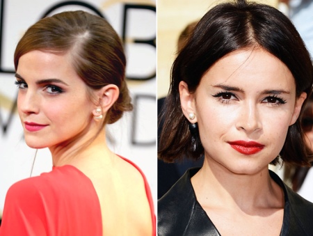 - Today, in many popular films, we can watch the excellent acting game of Emma Stone. This charming actress has repeatedly appeared on the red carpet in beautiful dresses, complemented by miniature studs with multi-colored pebbles.