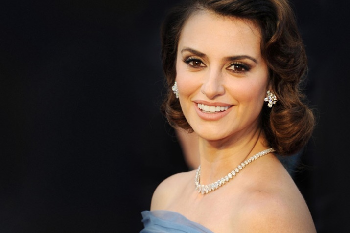 - Penelope Cruz, a Hollywood actress, often adorns feminine outfits with platinum and white gold studs. On the ears of this beauty you can find not only accessories of a classical form, but also interesting specimens in the original version.