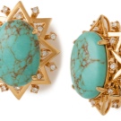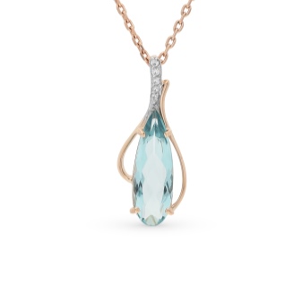 Most often, girls choose silver earrings with natural aquamarine, but among the gold models there are several options that are worth paying attention to. For example, a pendant in gold with aquamarines and cubic zirconias from the MASKOM brand from the Pierre Fatale collection.