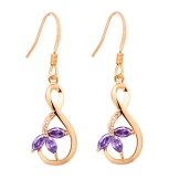 Gold earrings are often adorned with amethysts with a diamond type of cut.