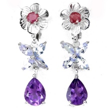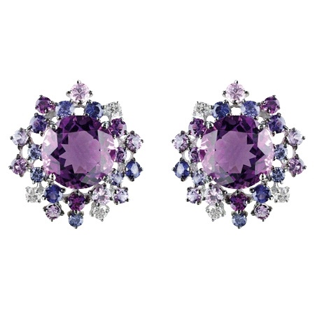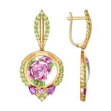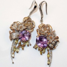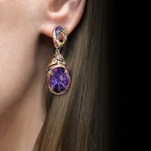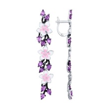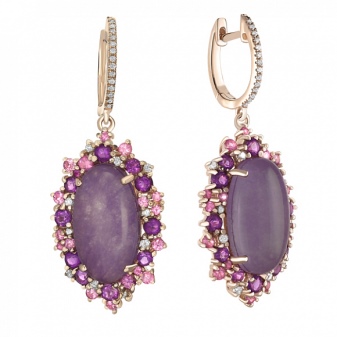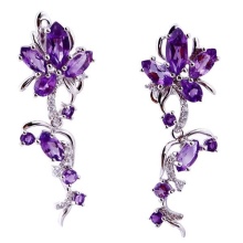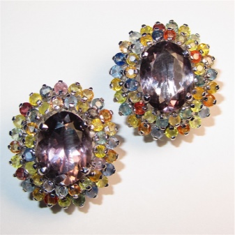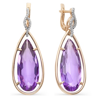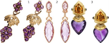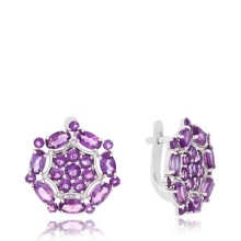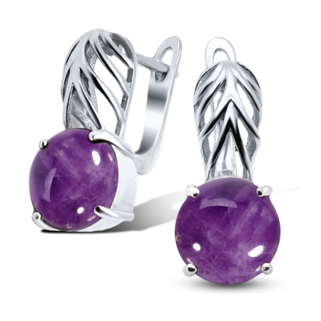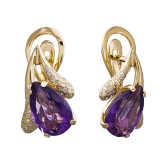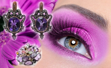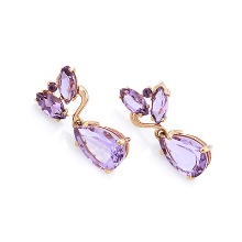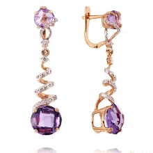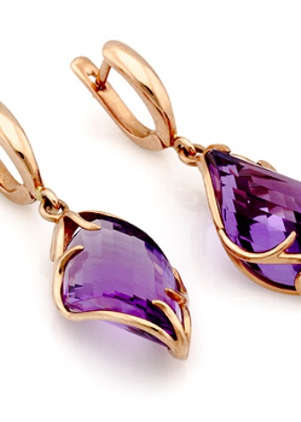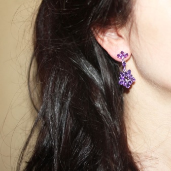 Earrings made of silver or gold with inserts of amethysts of different colors are a very popular jewelry, presented in a wide assortment.