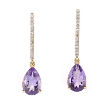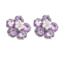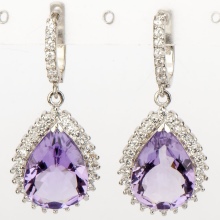Amethyst in earrings may be the only stone, but it can also be an ensemble with other gems. Often framed by cubic zirconias, synthetic stones, which are an inexpensive and very effective imitation of diamonds.