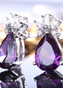 If you are going to purchase earrings with a purple-purple gem, then you have a great choice. This stone can have a different frame: silver, gold of different colors. Silver items are usually cheaper, gold items are more expensive.