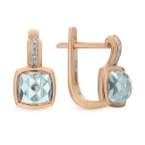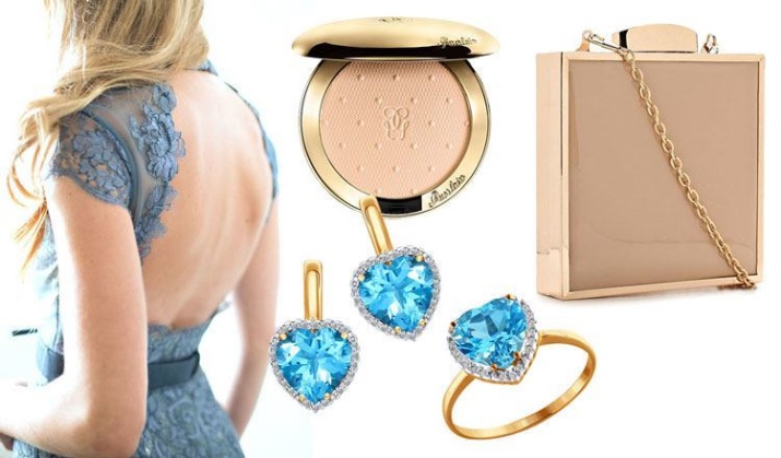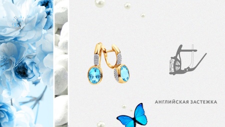 Yellow gold earrings with topaz, around which there is a scattering of small diamonds, are perfect for light-eyed blondes and girls with brown hair.The blue shade of the stone will bring a sense of lightness and peace to the image.