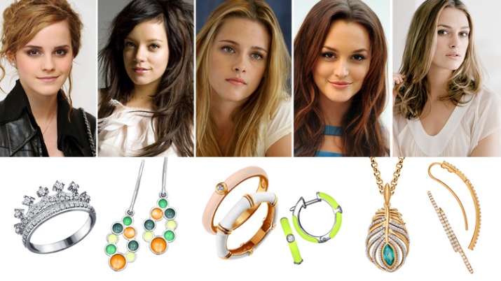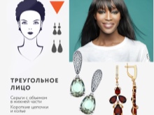 Slender ladies with sharp facial features are perfect rings and round earrings that will help soften the shape a little. And pretty girls with a soft oval face and mouth-watering cheeks should turn their attention to large hanging earrings.