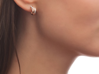 Earrings can be made of classic yellow gold, have a more sophisticated look if white gold is used and more romantic when using pink. And some products, in general, are made of combined gold.