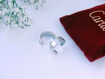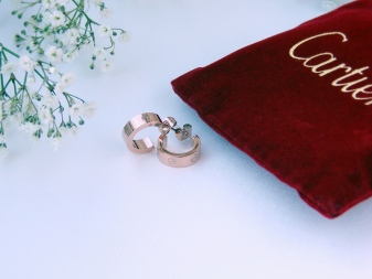 By the way, this particular model in a diverse design is presented in the collections of the Cartier jewelry house. In addition, there are quite interesting cloves and simple hanging earrings with decor.
