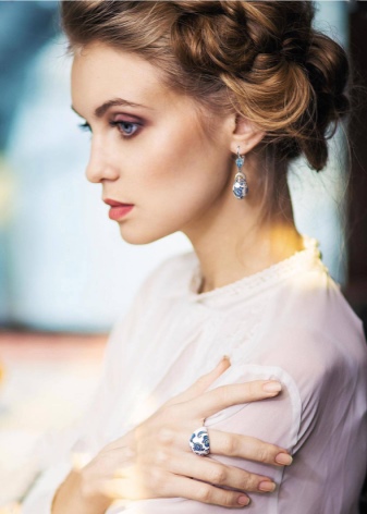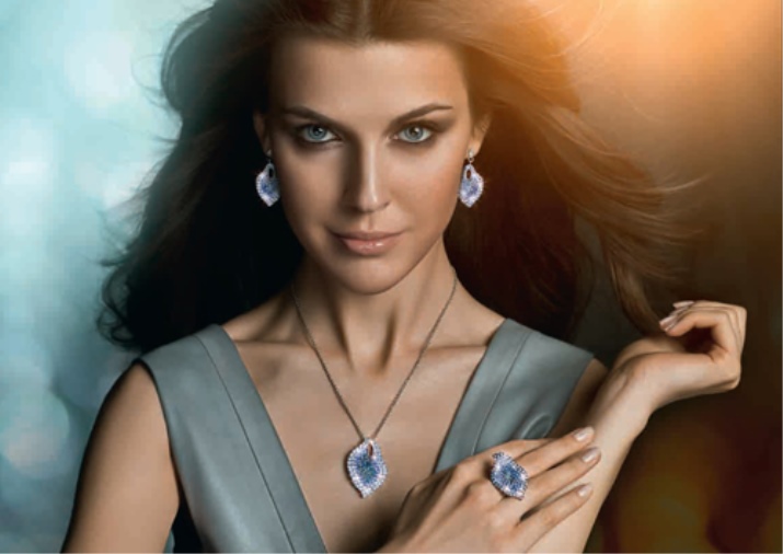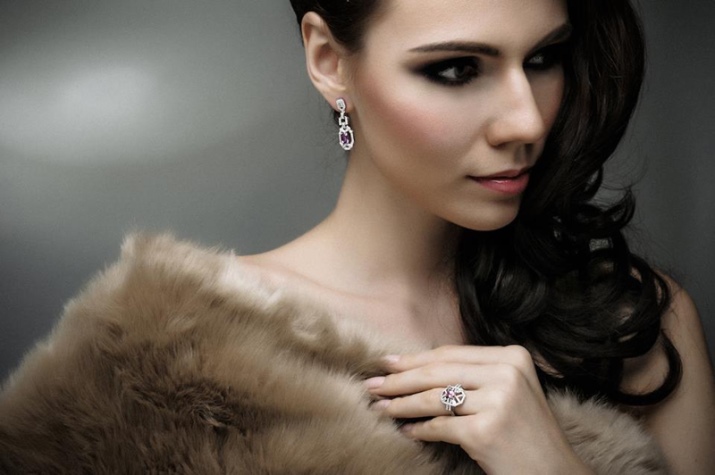 For example, with sapphires, the traditional shade of which is deep blue. Such a model will look great on dark-haired girls with blue and gray-blue eyes, shading them. Iridescent sapphire looks very impressive surrounded by the brilliance of diamonds.