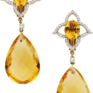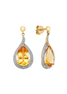 The most popular and noticeable are similar earrings with large citrines. Especially impressive stones will look juicy orange. Diamonds in such jewelry look perfect, especially if they are made in the form of small waterfalls.
