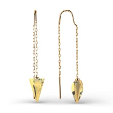 Luxurious gold earrings in the form of long pendants have recently been very popular. In such products, a shining pebble is placed on a neat chain of noble metal.
