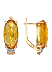 The combination of citrine and gold is one of the brightest and most juicy. It enhances the solar effect of decoration. A small amount of expensive metal is used to frame earrings, so they look especially elegant and sophisticated.