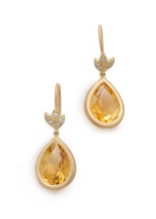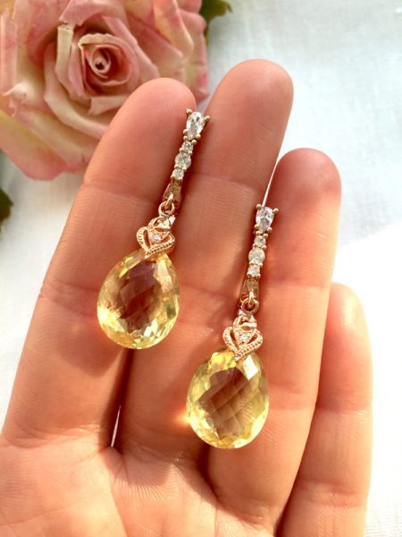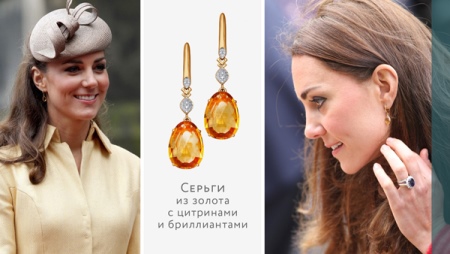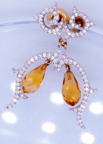 For accessories with diamonds, jewelers choose amber-honey citrine. Especially popular today are miniature studs or elegant hanging earrings.