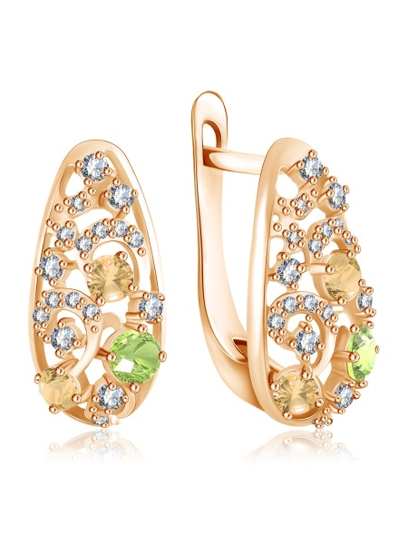Among such jewelry, it is worth highlighting stunning models in which a juicy gem and diamonds are framed by red gold. Such earrings will not allow their owner to remain in the shade and refresh the lady’s face.