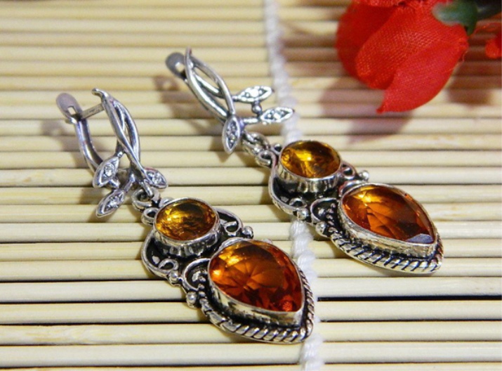 The size and shade of the stone depends on the appearance of the earrings. Silver is distinguished by its cool tone, therefore, in this frame, citrine unconditionally becomes a bright accent that attracts attention.