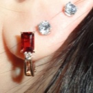 Earrings with a red stone, complemented by miniature Swarovski crystals, look very tender and coquettish. They effectively play in the sun, giving the accessories a unique shine and radiance.