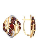Ladies with a round face will look amazing on earrings that have non-trivial shapes. It can be abstract models with garnet and interspersed with diamonds or fashionable elongated products.