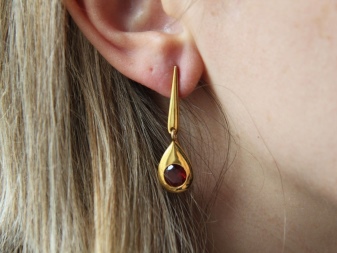 Gold earrings with garnet can be attributed to the unchanging classics. They were popular back in the 18th century in many European countries. Noble ladies wore them to emphasize their high status.