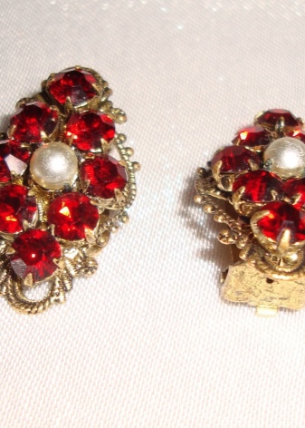 Clip-on earrings are in demand among beauties of any age, since they do not need to be punctured in earlobes. Such jewelry with pomegranate looks no less bright and attractive than classic pieces.