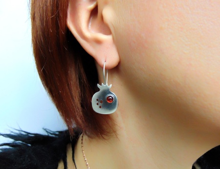 Accessories with pendants look incredibly feminine and luxurious. They can go to a social event or a gala event. Red pomegranate in such products will certainly cause delight and admiration of others.