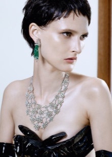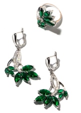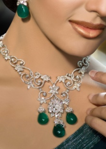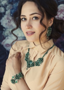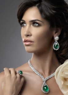 However, jewelry with emerald, even gold, even silver, is recommended to wear at evening events. Emerald earrings are perfect for evening wear, be it an elegant evening gown or silk evening gown. Designers advise to emphasize with the help of a large emerald, but, as already mentioned, do not overdo it.