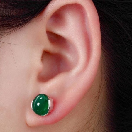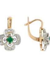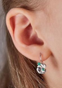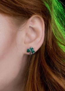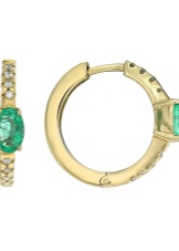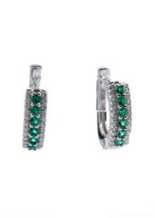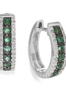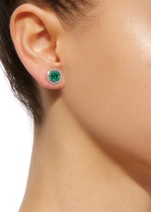 - Stud earrings are cute and simple, modest, but at the same time giving zest to their owner. The stone in them can be either without a cut in general, or with a cut, usually a “rose”. If not cut, then it resembles a slightly cloudy crystal. Other, smaller crystals, usually transparent: diamonds or zircons, are often added to faceted emeralds. Such earrings can be made of gold and silver.