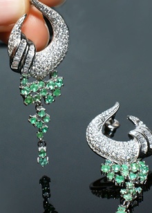 - Despite the fact that emerald earrings are already catchy and bright, one can often see models of earrings with diamonds and emerald. This is a special chic. These earrings are worn on special and special occasions.