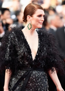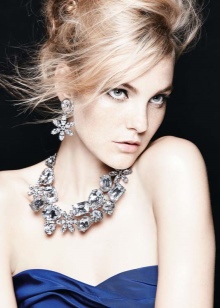 Stylists advise choosing a jewelry in the ear according to the shape of the face (as we wrote above) and the color of the eyes. Stones should emphasize the color of your eyes, in no case without suppressing it, and serve as an accent of the image: