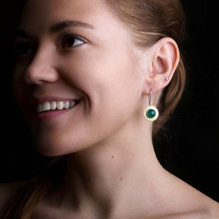 Small earrings with green onyx are suitable for everyday wear. They will look good with a sundress or dress, jeans and an airy blouse.