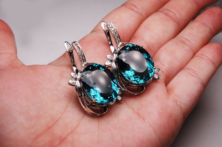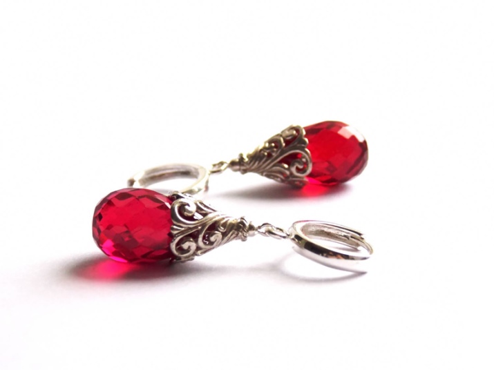 Earrings with artificial stones are popular due to the fact that their cost is much lower than natural. They are a complete imitation of natural minerals, they are created from special synthetic materials using modern technologies.