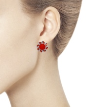 Carnations will never lose their relevance. They will look perfect on the owner of a triangular shape of a face. The most popular are jewelry in which the stone is made in a round or oval shape.