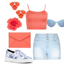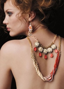 - For summer dresses and air sundresses, it is worth choosing small accessories with chains. In such jewelry, coral can have a bright scarlet color. No less spectacular with light ensembles, and pretty cloves will also look.