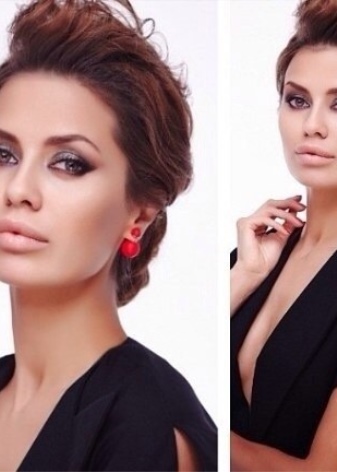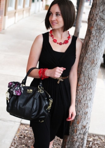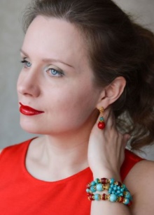 - For a chic evening ensemble, it is worth choosing jewelry that will be in harmony with the tone of clothing. For example, red coral will be in harmony with the dress in black. Such an image can be supplemented not only with the help of earrings, but also with bracelets and necklaces with coral.