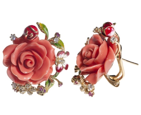 The most popular and desired accessories are in the form of miniature roses. The mineral in such earrings can have both saturated and delicate color.