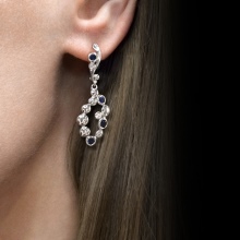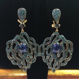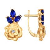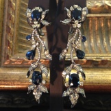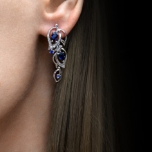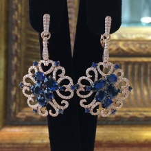 In floral forms, expensive sapphire earrings are created in which a floral ornament in the form of a flower or leaf is richly decorated with small stones.