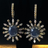 Sapphires of the usual blue color for us may not be suitable for all girls. This is due to the color of hair, eyes, and skin. You don’t need to be upset, because there are other shades of this stone. You can choose earrings with black, pink, green, yellow or with white stones. All these colored sapphires are called fantasy ones.
