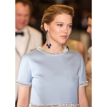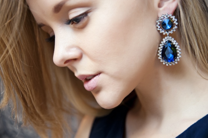 Stylists recommend wearing open dresses with earrings with this stone, in which the neck and shoulders are bare, of course, if your figure and dress code allow this. Hairstyles, preferably, do high so that the curls do not hide all the luxury of jewelry with sapphires.
