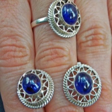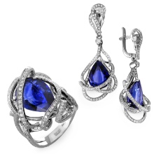 Earrings, a ring and a pendant of rare, square, cut will attract the attention of the most sophisticated fashionistas. The rich blue color of the stone will make the eyes even more expressive, and the rich plant cut will give the whole image a mysterious mystery.