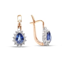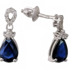 Teardrop-shaped sapphire earrings are the most common form of jewelry. As a rule, earrings are small pendants with a length of about 4 cm.The clasp on them is in the form of a carnation or a French castle. Such drop earrings can be supplemented with a diamond, zircon or pearl.