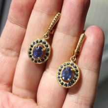 Another very common form of sapphire earrings is oval.. Often in these jewelry there are 2 stones of different sizes. The most common are oval models in the form of pusets or small pendants. Jewelry of this type is usually richly finished with metal casting and various gems.