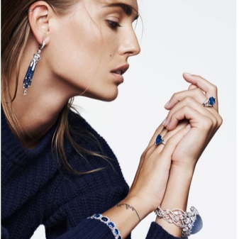 For ceremonial events, earrings-earrings or earrings-clusters with large stones, both classical (oval, circle), and unusual (avant-garde) form, for example, in the form of hearts, are suitable. When choosing earrings, you need to take into account the features of your appearance. Dark blue sapphires are best suited for blue-eyed or gray-eyed blondes.