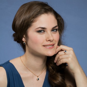 Sapphire jewelry will also be suitable for brunettes, they will give the image an intriguing mystery. Brown-haired women will also find suitable sapphire earrings. The main rule is that they should not be massive, otherwise they will look vulgar. For girls with the above shades, earrings where sapphire is surrounded by metal braiding and transparent pebbles will be ideal. In this case, the gem will shine, but at the same time, contrast with the colors of the hair and not distract attention from the girl's face.